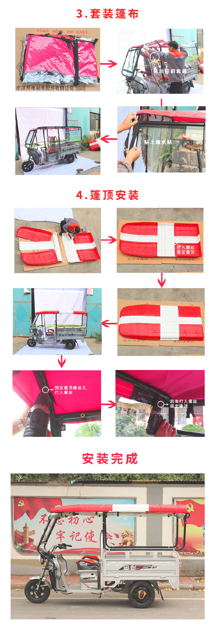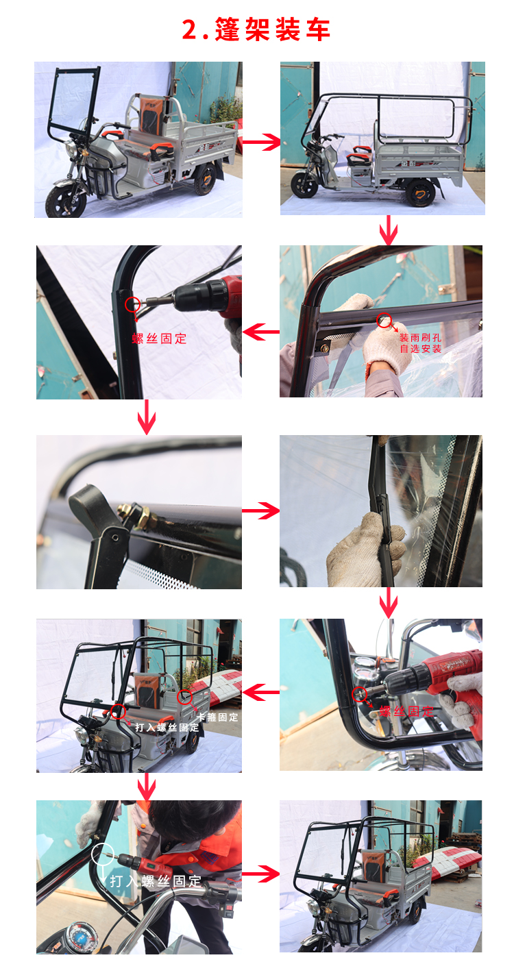 安裝三輪摩托車車篷,只需五步!